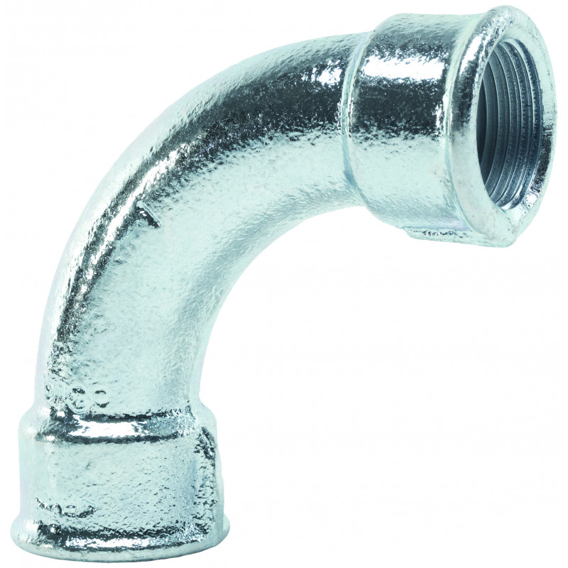 Coude grand rayon: Taille en (mm): 15x21 Taille en pouces: 1/2 Raccordement: Femelle / Femelle Finition: Galvanisé Courbe grand rayon: 90°