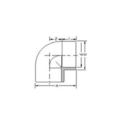 Courbe 90° pvc haute pression, tableau en mm: d 63 E 76 L 38 Z 127 PN à 20°c 16